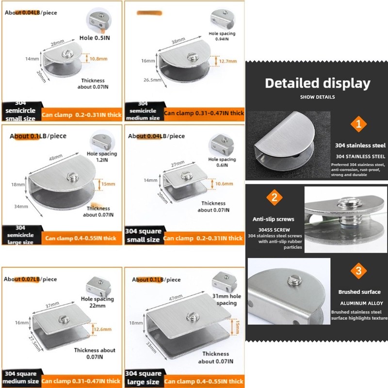 - 【3 Sizes 】 Fits glass thickness 1/4”, 3/8”, and 1/2”