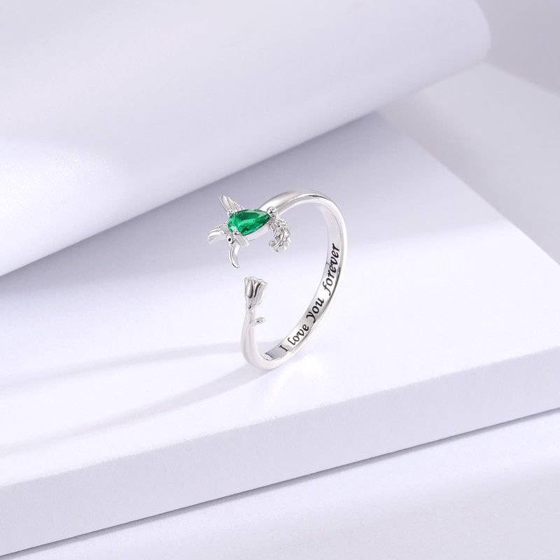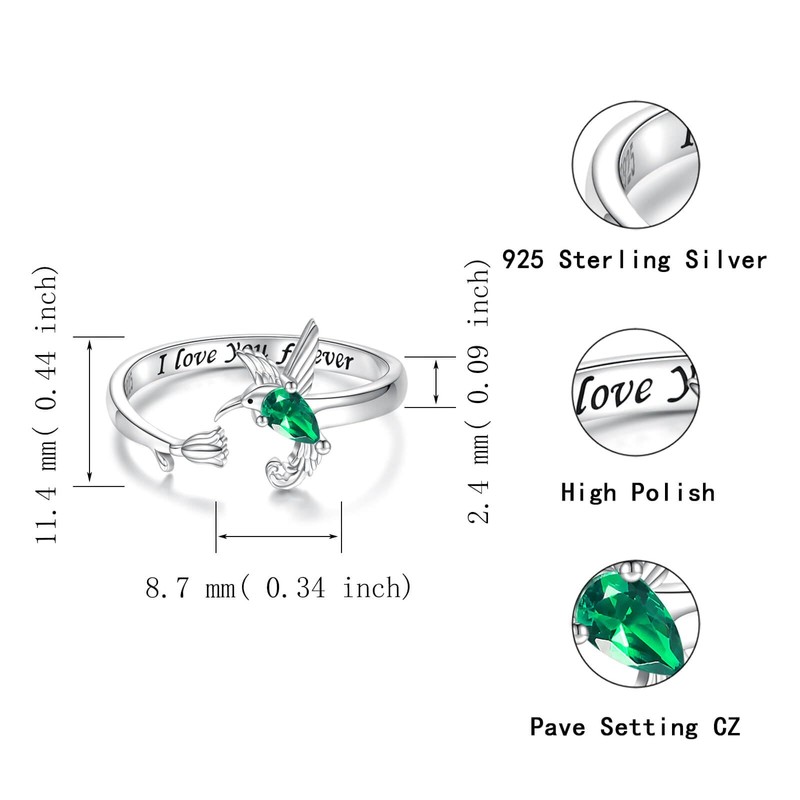 - High Quality: This 925 Sterling Silver Hummingbird Rings set with shiny green cubic zicron. Nickel-Free, lead-Free, cadmium-Free and hypoallegenic with no harmful Ingredients. It won't Turn Your fingers Green or cause irritation