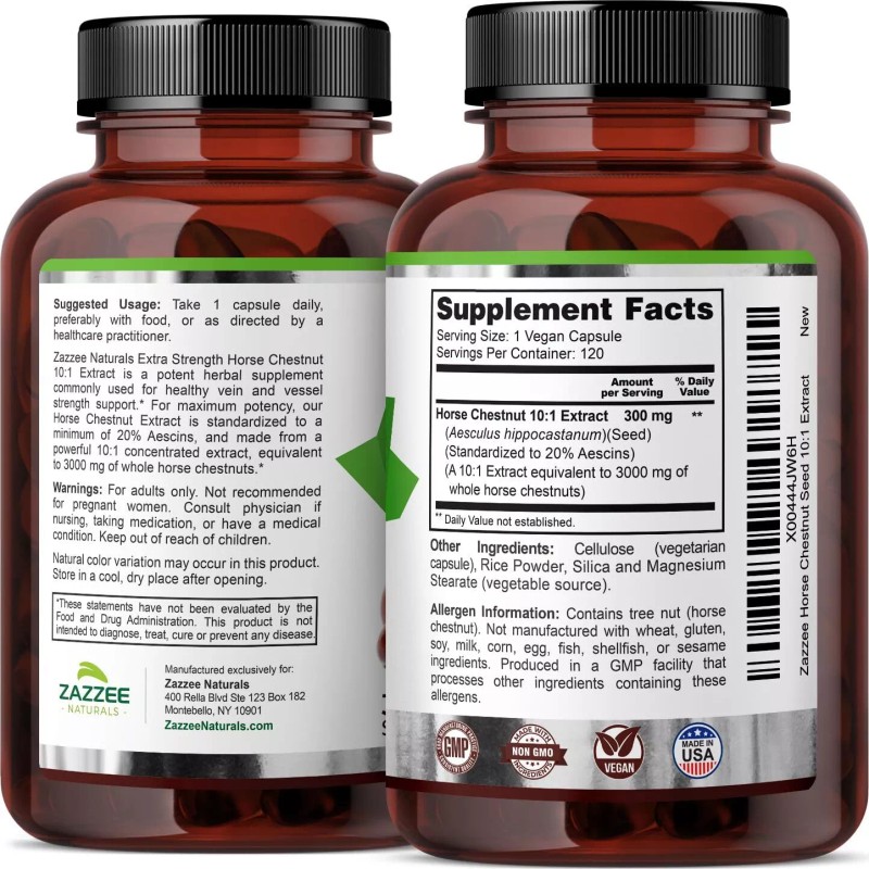 Zazzee Extra Strength Horse Chestnut 10:1 Extract, 3000 mg Strength, 20% Aescins