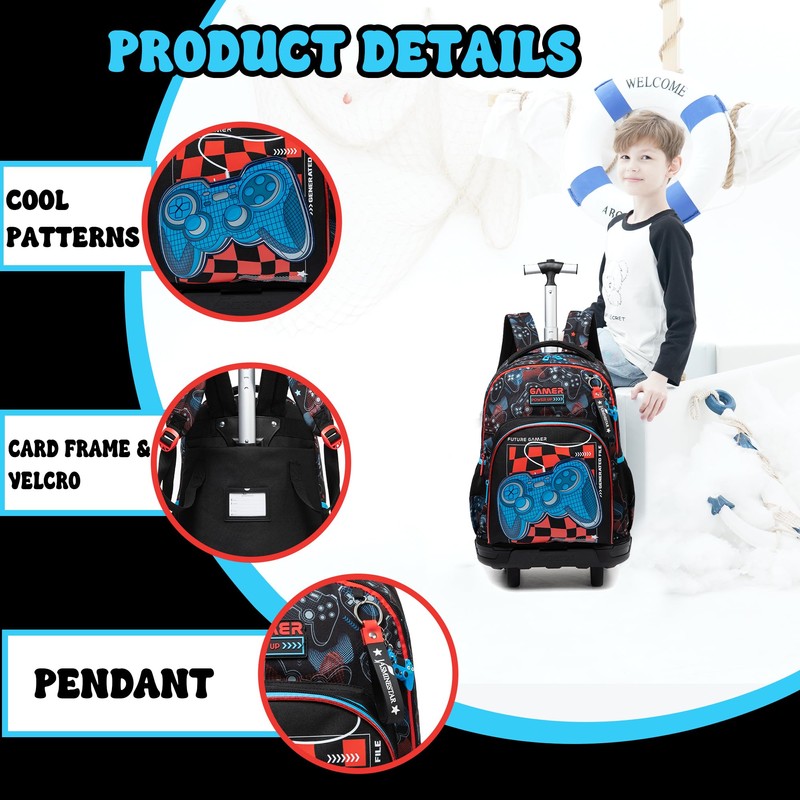 - School Supplies For Kids:This rolling backpack for kids is a one-piece trolley book bag that is non-removable.The trolley bar of each school bag is multi-position adjustable,so you can freely adjust the length of the bar according to your height;moreover,this backpack is lightweight and easy to carry.You can carry it on your back or pull it, and you can choose according to the different needs and preferences of your child.