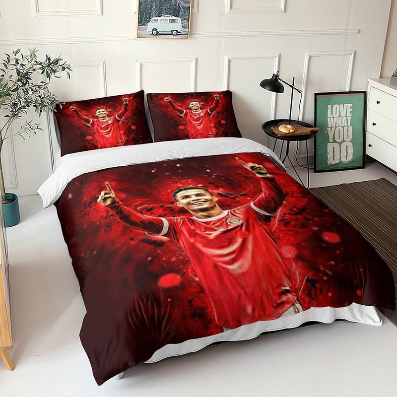 Zbeiba Bed Linen 135 x 200 cm Adult Bedding Set, Children's Duvet Cover, 3D Football Star Bed Linen Set with Zip and Pillowcase (A5, 135 x 200 cm + 2 x 80 x 80 cm)