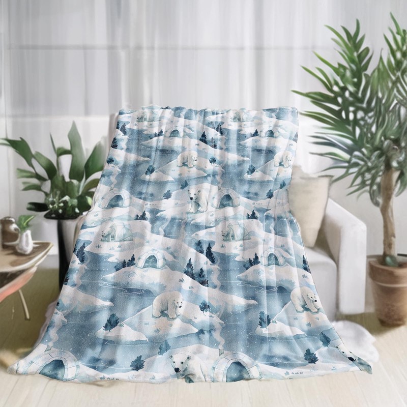 zbezbe Polar Bear Flannel Blanket Igloo and Pine Tree Arctic Winter Snow Scene Lightweight Blankets 60x50inch Single Sided Print Throw for Sofa Couch Bed Decor Adults and Nature Lovers Gifts