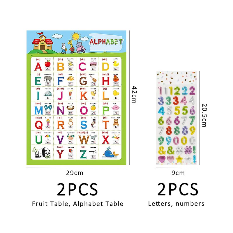 - Product contents: you will receive 2 digital alphabets and 2 digital letter stickers. The size of the digital letter poster is 42 x 29 cm and the sticker size is 20.5 x 9 cm. The colours are versatile and suitable for children to learn letters and numbers. Training
