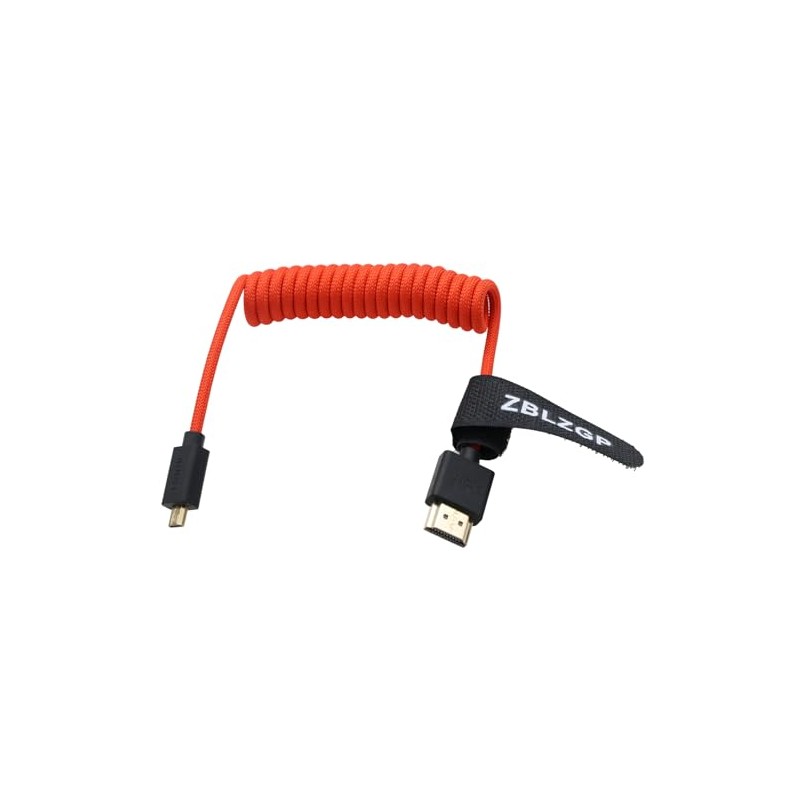 ZBLZGP Micro HDMI to HDMI Cable Coiled High Speed 4K@30Hz for GoPro, Camera, Raspberry Pi, Laptop to TV, Gold Plated Connectors, Braided Nylon