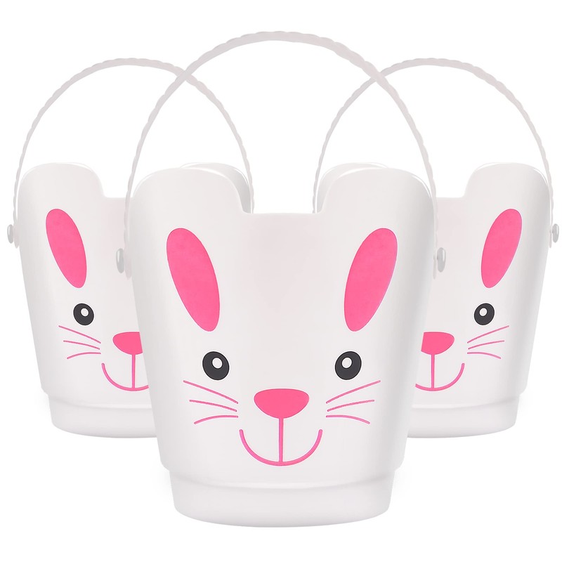• EASTER BASKETS SET: Includes 3 bunny pails. Bottom is sized 4.7" in diameter, opening 6.9" in diameter, and 7.4” in height. Made of premium plastic material, safe and washable. A piece of tissue paper was added between the buckets in case they get stuck.