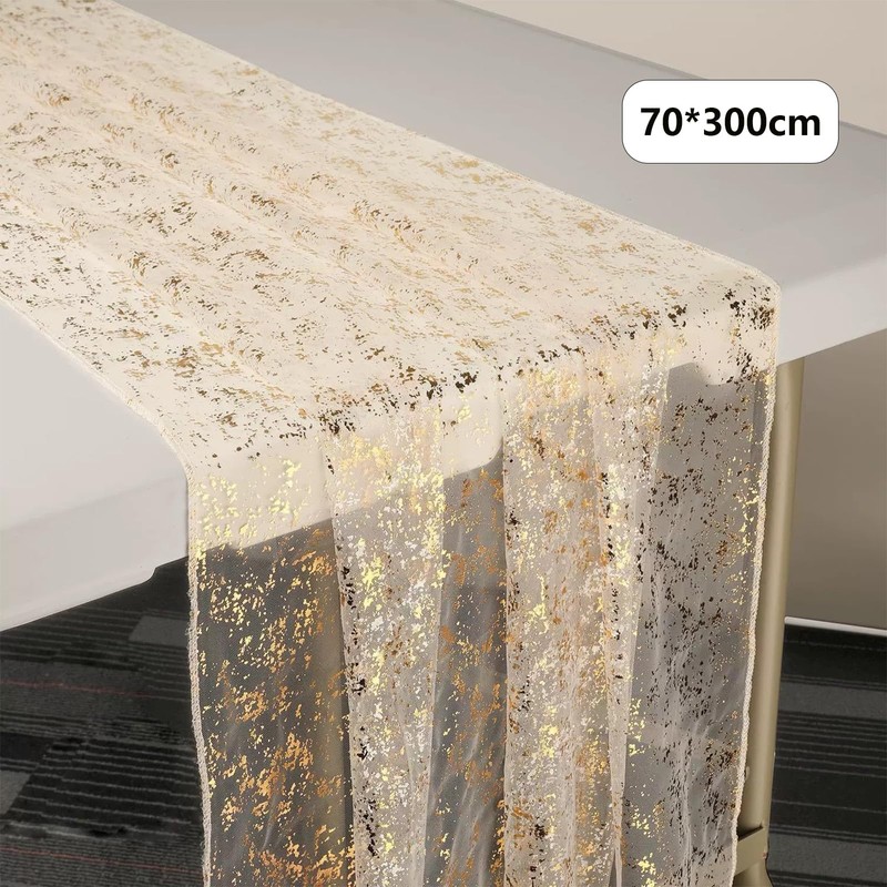 Zcbzbn Gold Table Flag, Glittering Table Decoration Birthday Gauze, Transparent Chiffon, Modern Table Flag in Bohemian Style, Party Table Decoration, Christmas, Birthday, Wedding (Gold)