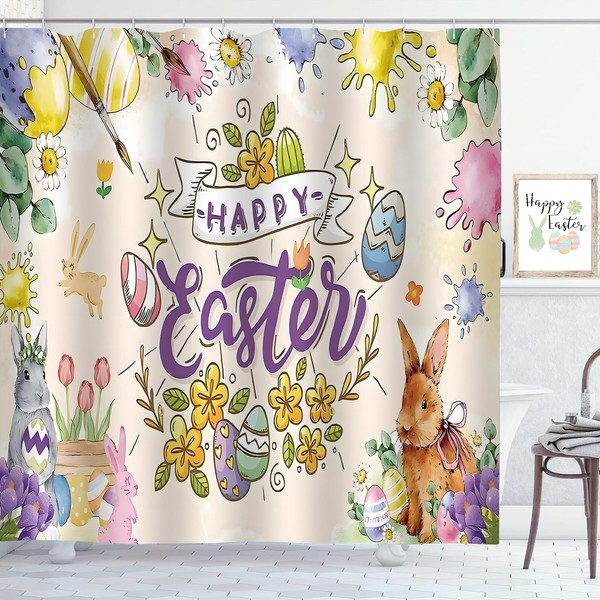 ZCHOMI Happy Easter Shower Curtain Bunny Rabbit Easter Eggs Spring Bathroom C...