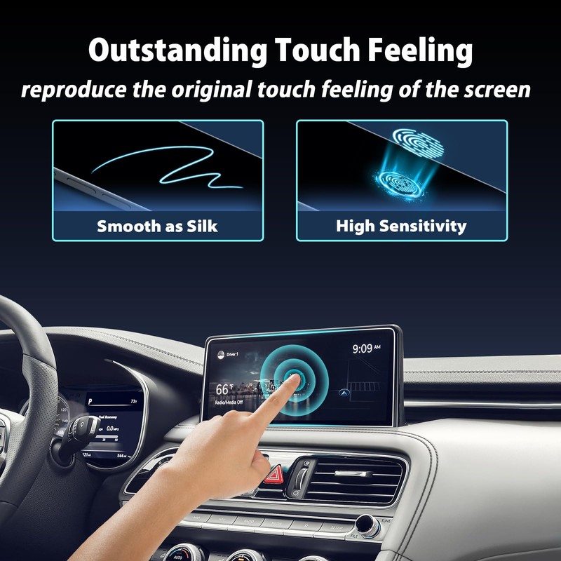 - [UPGRADE LOOKING] The 2025 genesi g70 accessories,2024 genesis g70 screen protector glossy surface makes the screen look so much better than the matte finish the car comes with and the touch is more sensitive, so there is no need to worry about affecting the use of the original car's button functions. 2024 genessi g70 2.0t rwd screen protector with anti-fingerprint design which the screen protector does not easily leave your fingerprints