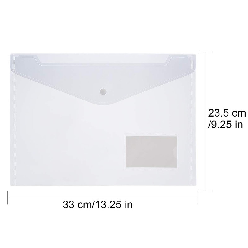 ZCZN 24 pcs Plastic File Folders, A4 Paper Size Waterproof File Envelopes with Label Pocket and Snap Button for School Home Work Office Organization, Transparent