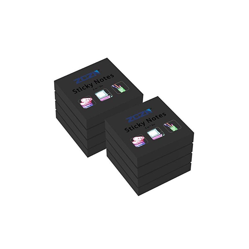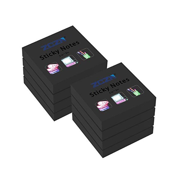 ZCZN Small Sticky Notes, 2in x 2in, 100 Sheets/Pad, 8 Pads/Pack, Black