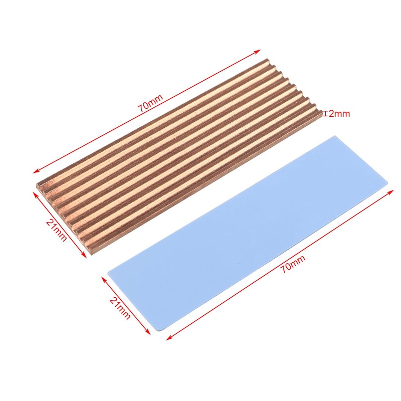 ZDE M.2 SSD Heatsink 70x21x2mm Copper Heatsink with Silicone Thermal Pads for PC Laptop Raspberry Pi M.2 2280 SSD NVMe PS5 Cooling