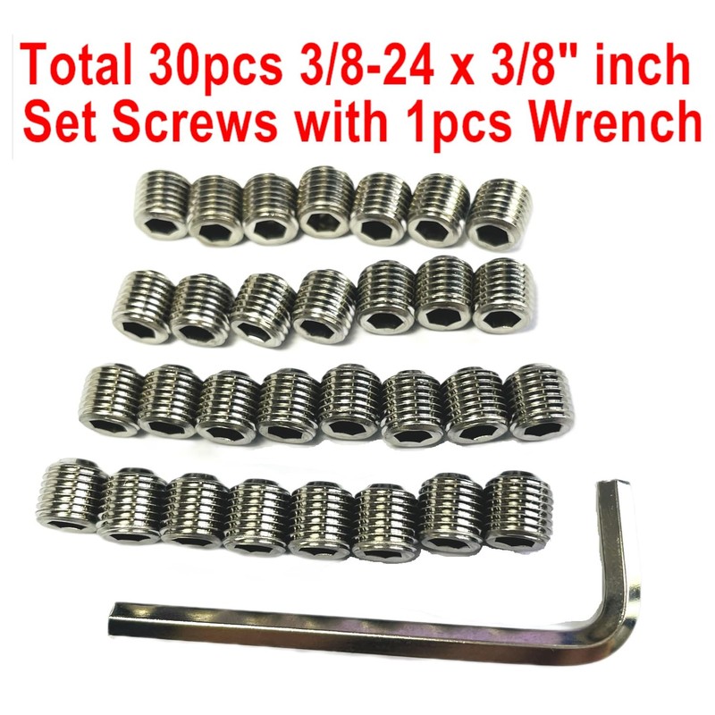 - 3. [30pcs 3/8-24 SET SCREWS + 1PCS Allen WRENCH]-----Package includes 30pcs allen head socket set screws & 1 bonus corresponding hex drive key:3/16" allen wrench, offering ease of use by hand. Fixing screws: headless screws that are flush with or below the surface after installation. The internal socket driver needs to use an Allen key (hex wrench) to install.