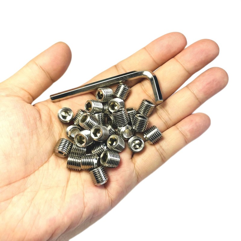 - 3. [30pcs 3/8-24 SET SCREWS + 1PCS Allen WRENCH]-----Package includes 30pcs allen head socket set screws & 1 bonus corresponding hex drive key:3/16" allen wrench, offering ease of use by hand. Fixing screws: headless screws that are flush with or below the surface after installation. The internal socket driver needs to use an Allen key (hex wrench) to install.