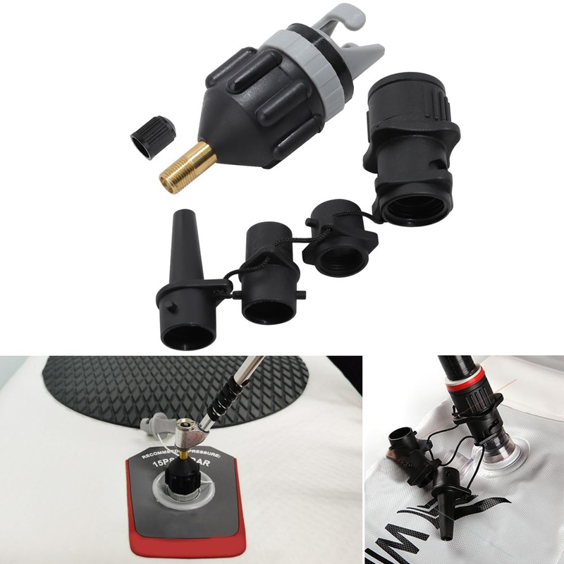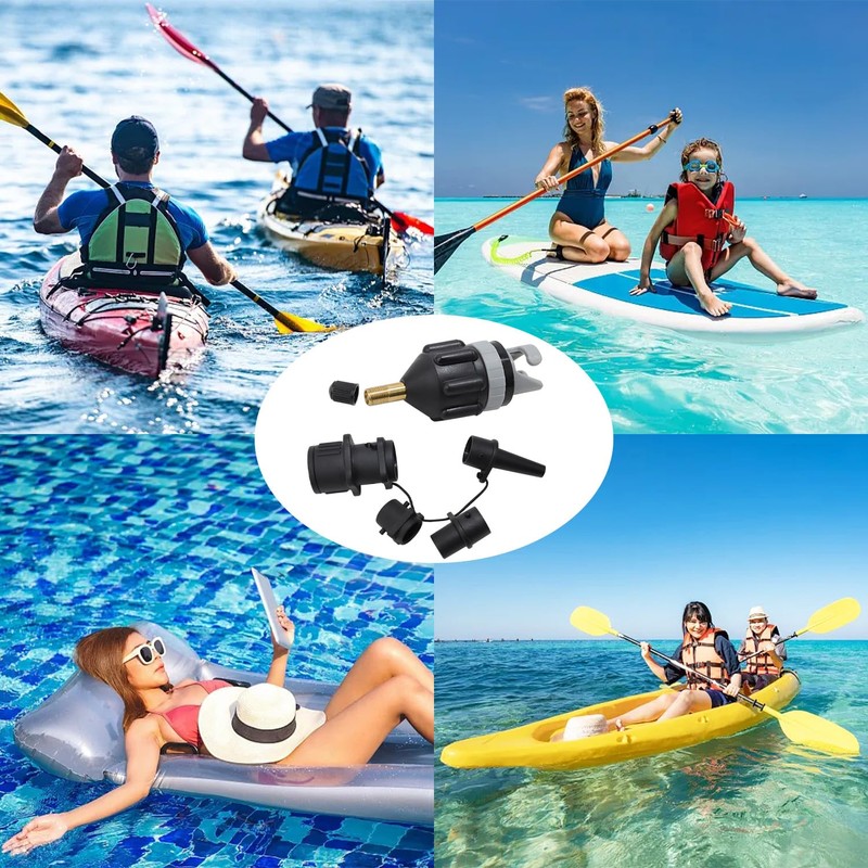 - Multifunctional air valve SUP adaptor: air pump adapter contains 4 different types of valves, suitable for inflatable equipment in different environments, such as inflatable boats, air cushions, swimming rings and kayaks etc. According to the inflatable interface, it is also very easy to choose the right connector without having to buy other connectors