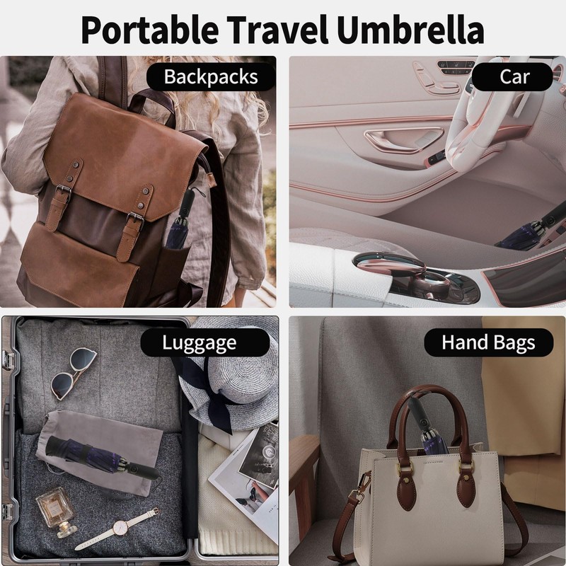 - PORTABLE AND COMPACT: The compact umbrella is super lightweight which weighs only 0.8lb.And it's only 12.5inches long when folded. You can store this small umbrella easily in your car, backpacks, tavel bags etc. Perfect for travel,camping, and daily use.