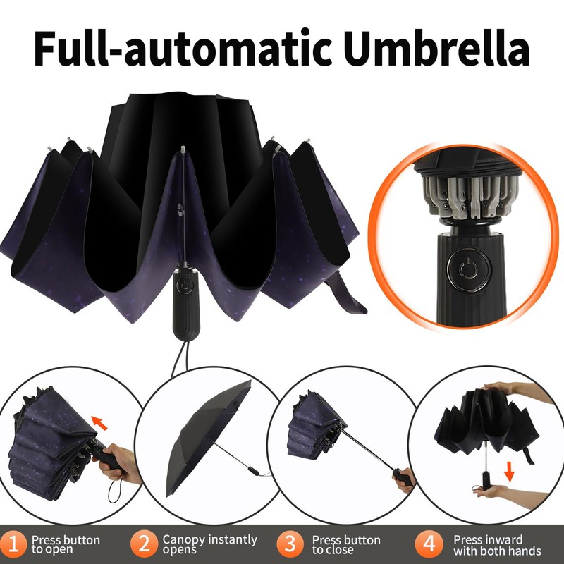 ZDSSM Umbrella Travel Large Windproof Inverted Umbrellas for Rain Portable Automatic Small Compact Reverse Folding Umbrellas for Women Men (Starry Sky)
