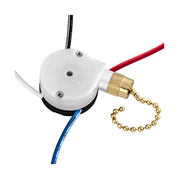 ZE-208s 3 Speed Fan Switch for Ceiling Fan,4 Wire Pull Chain Switch Compatible with Hunter Fan Light Replacement Parts, Brass Chain