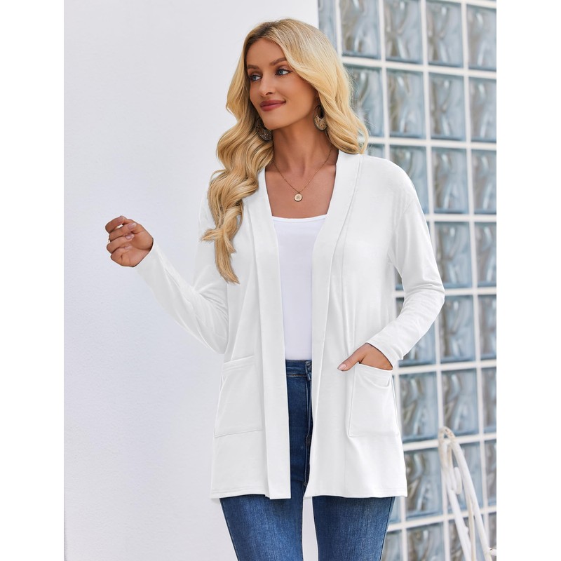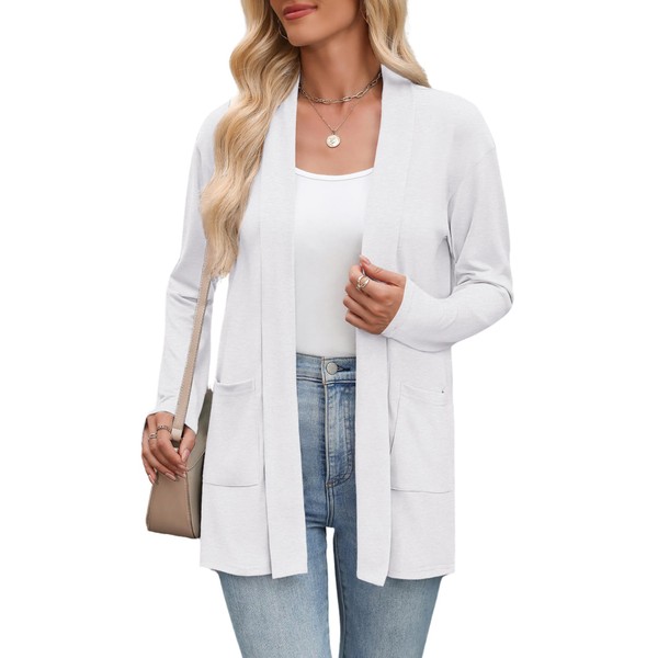 Zeagoo Lightweight Summer Cardigan Loose Casual Long Sleeve Open Front Breathable Cardigans with Pockets A-White