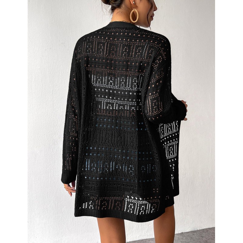 Zeagoo Womens 2025 Summer Crochet Cardigan Sweaters Lightweight Long Sleeve Open Front Kimono Boho Knit Cover Ups Black
