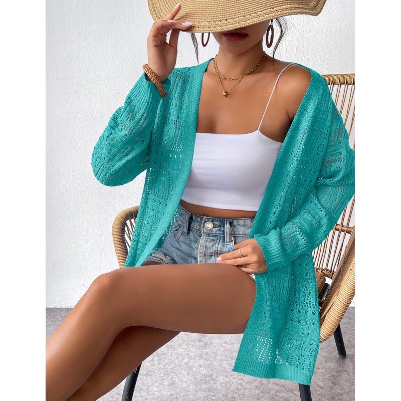 Zeagoo Womens 2025 Summer Crochet Cardigan Sweaters Lightweight Long Sleeve Open Front Kimono Boho Knit Cover Ups Teal