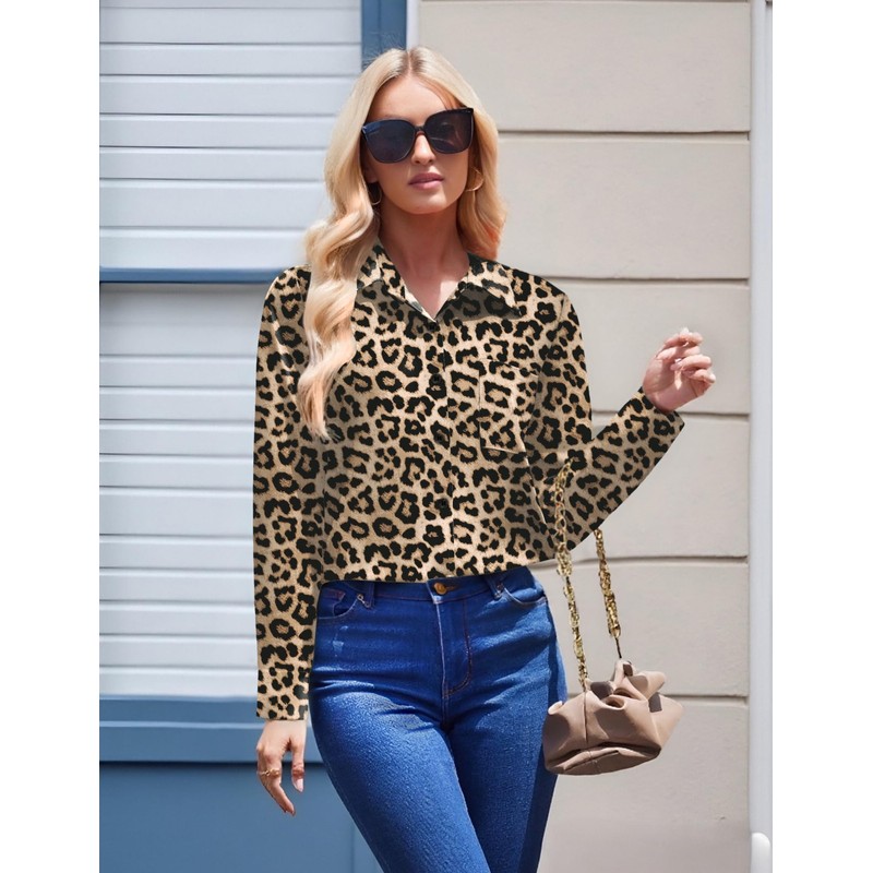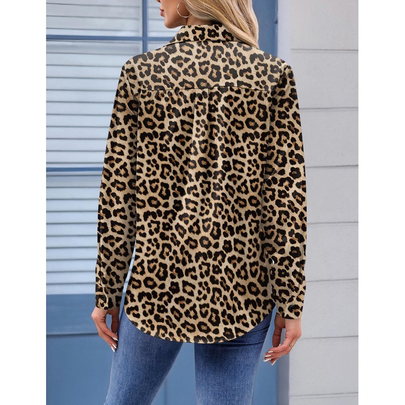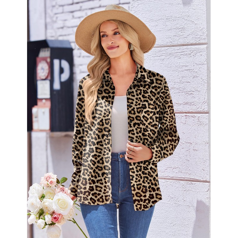 Zeagoo Womens Leopard Print Button Down Shirts Long Sleeve Collared Blouse Office Work Tops Casual