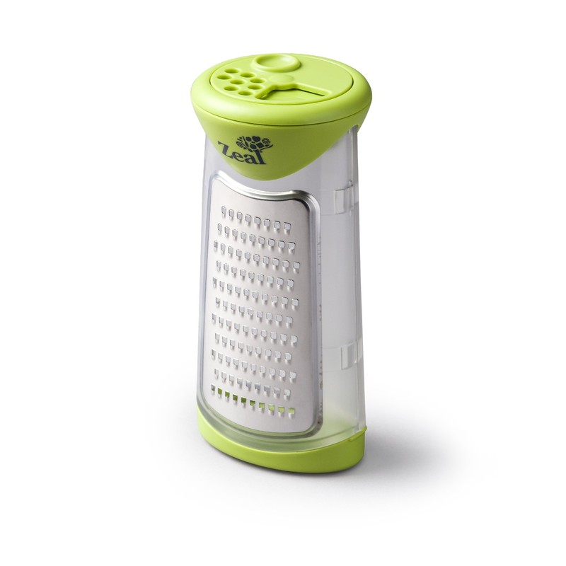 • The Zeal Shredder tool grates directly into the storage pot. Simply select the dial on the lid to either pour, sprinkle or close