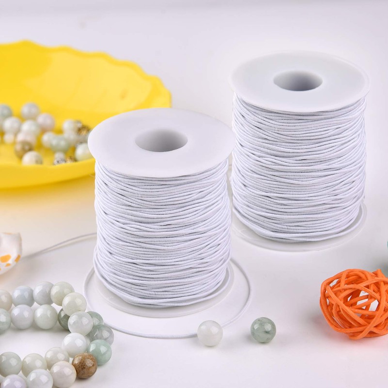 Zealor 2 Rolls Elastic Cord (1 mm). Stretchy and flexible, great for craft projects, doll construction, jewelry bead stringing and more **Product Detail:** Color: white Diameter: 1 mm Material: polypropylene fabric cord Length: Each roll length is 100 m/ 109 yards. **Package Include:** 2 x White Elastic Cord
