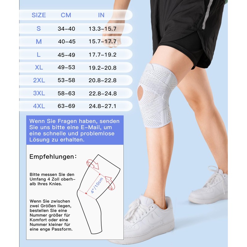 - 4 spring stabilisers knee support technologist: Place 4 spring stabilisers on both sides of the knee brace to provide sufficient compression and support for the knee and patella to reduce the pressure concentrated on the knee joint during heavy work and strenuous exercises, effectively relieve knee pain, ACL, MCL, arthritis, strain, sprain, meniscus tear, etc.