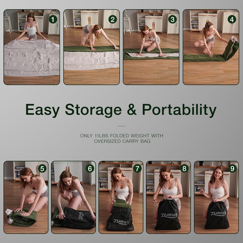 - FEATURES: Includes carrying case for storage and convenient portability; Raised 16-inch design makes getting in and out of bed easier; (L x W x H): 80 x 60 x 16 inches