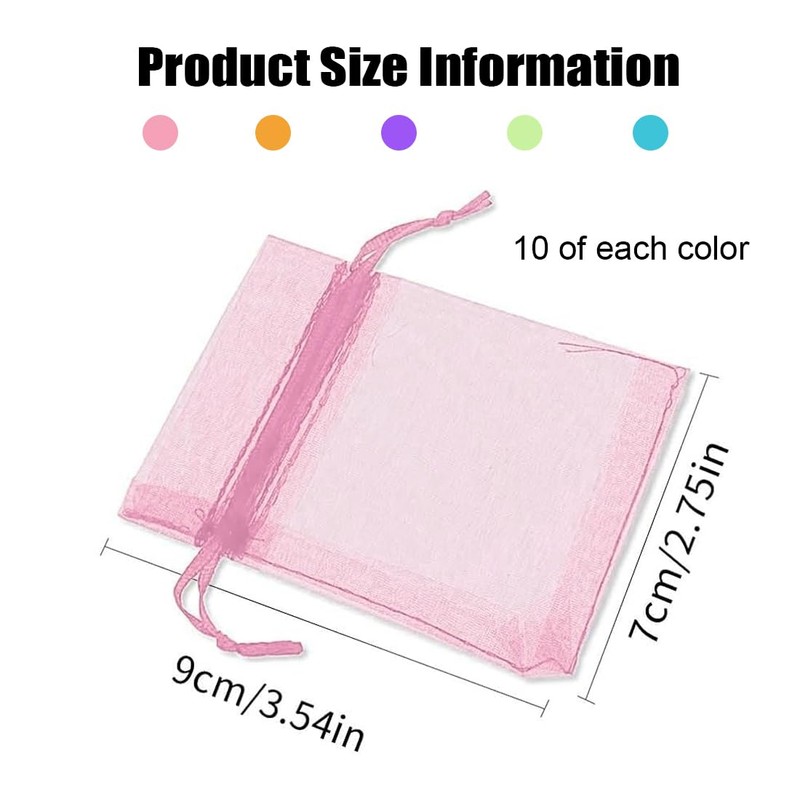 - Size: This organza bag is 7 cm x 9 cm. Please allow 0.5-1cm error due to manual measurement. These small bags are perfect for wrapping small gifts nicely.