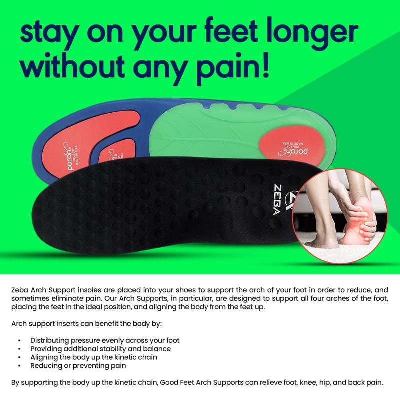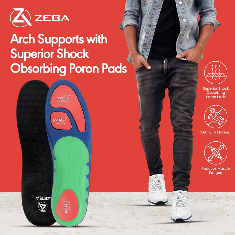 - QUALITY: Zeba Arch Support gel insoles for men use premium quality materials to ensure that they are durable and long-lasting