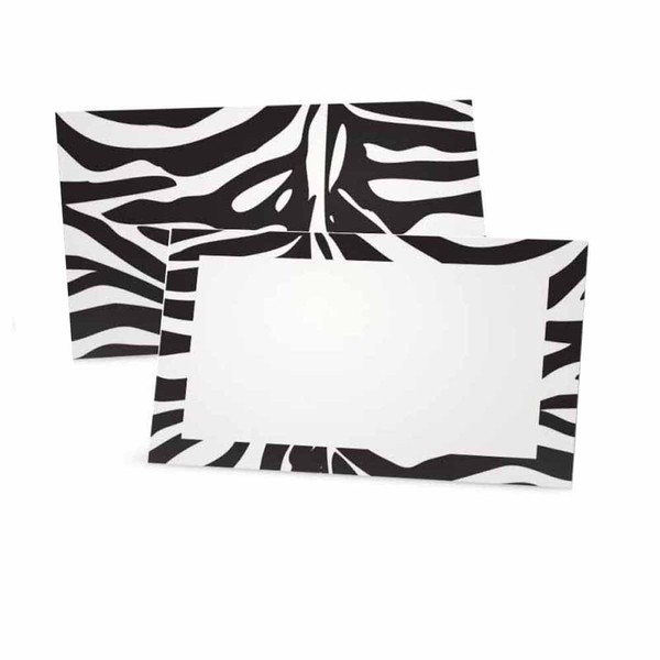 Zebra Animal Print Place Cards - Flat Or Tent Style - 10 Or 50 Pack - White Blank Front with Border - Placement Table Name Seating Stationery Party Supplies Dinner Occasion Event (50, Flat Style)