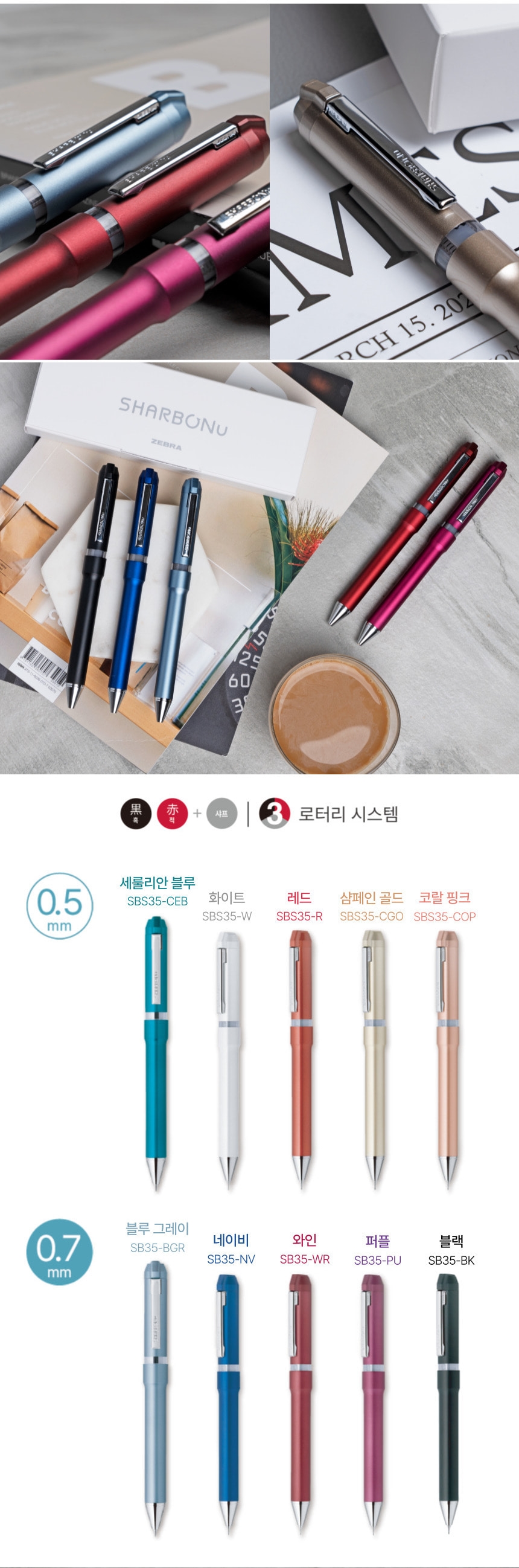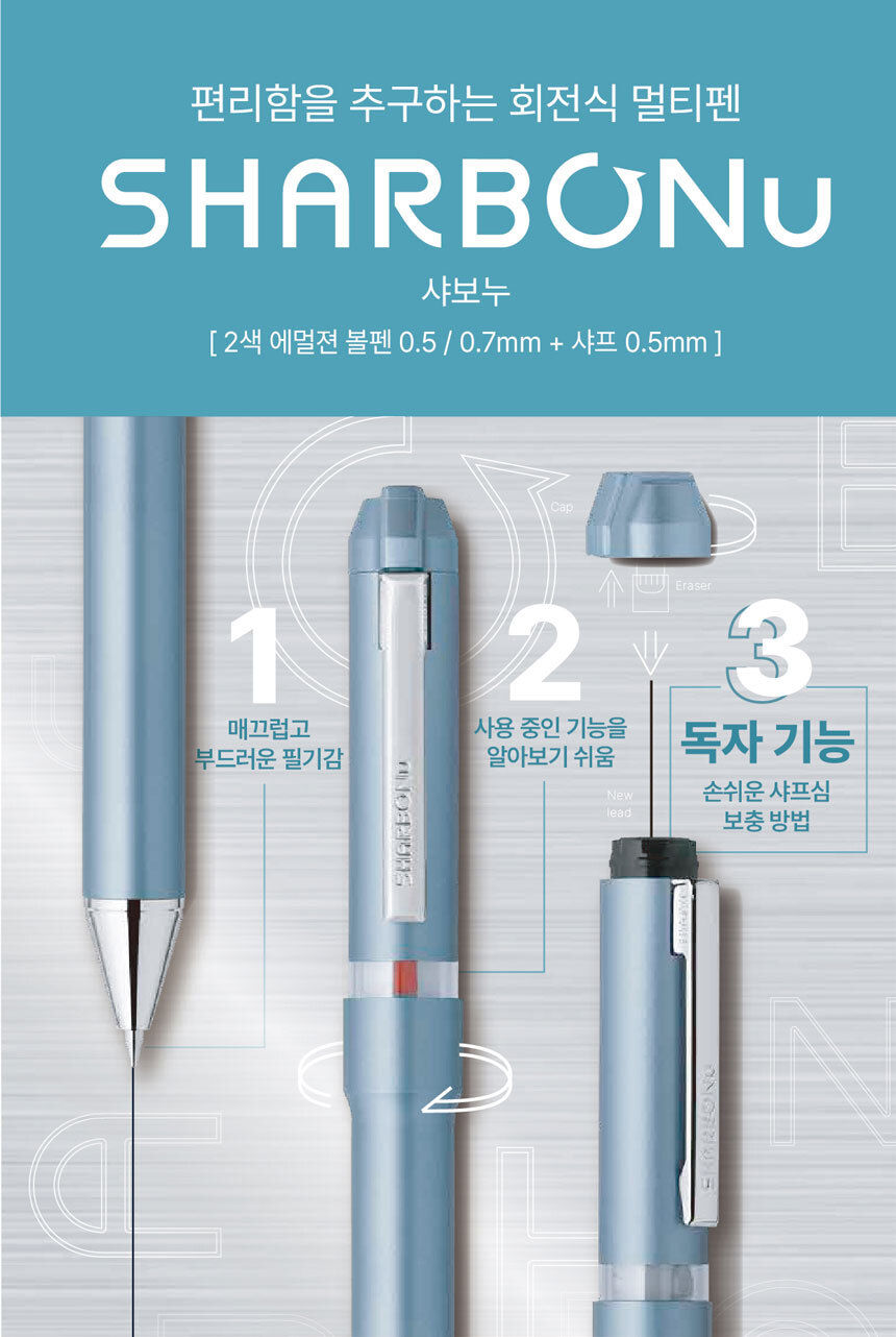 Zebra Chabonneau Premium 2+1 2-Color + Mechanical Pencil Rotary Multi-pen / 제브라 샤보누 고급 2+1 2색+샤프 회전식 멀티펜