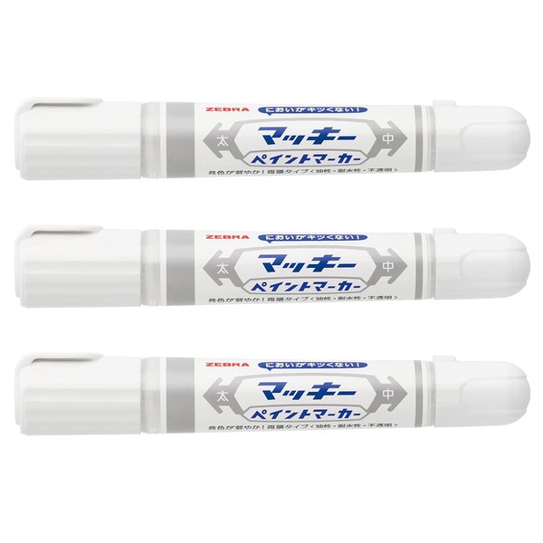 Zebra Permanent Pens, Mackie Paint Markers, White, 3 Pack YYT20-AZ-W3