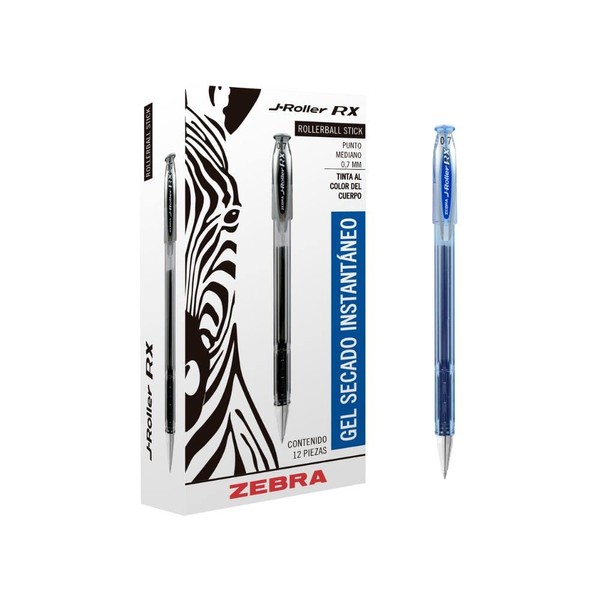 Zebra Rollerball, Pluma J-Roller RX Mediano, Tinta de Gel, Caja con 12 Piezas, azul