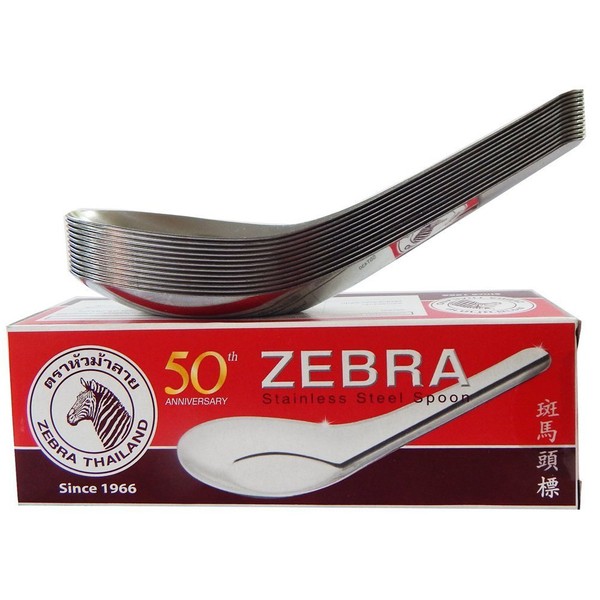 Zebra Thai Chinese Asian Stainless Steel Rice Soup Spoon (12 Pack), Silver