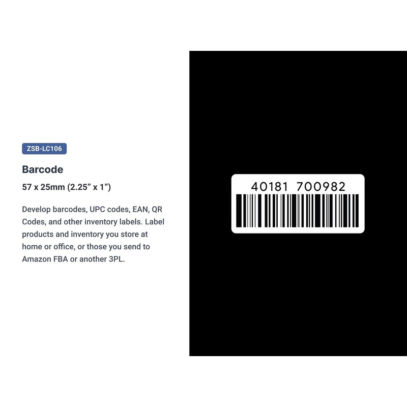 Zebra - ZSB Barcode Labels for Thermal Label Printer | Label Printer Cartridge - ZSB-LC106-2.25 x 1 inch (1,000 Labels in Cartridge) | Compatible with ZSB-Series Label Printer Machine
