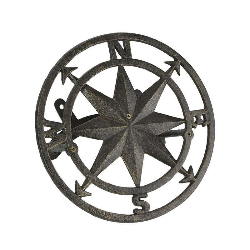 Zeckos Decorative Wall Mounted Cast Iron Compass Rose Garden Hose Holder Bronze