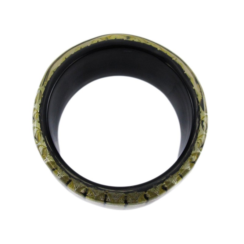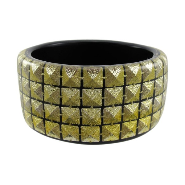 Zeckos Goldtone 80s Rock Pyramid Studded Lucite Bangle Bracelet 1.5 Inches Wide