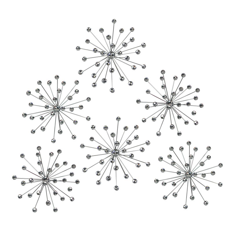 Zeckos Set Of 6 Silver Starburst Jeweled Metal Decorative Wall Art Hangings