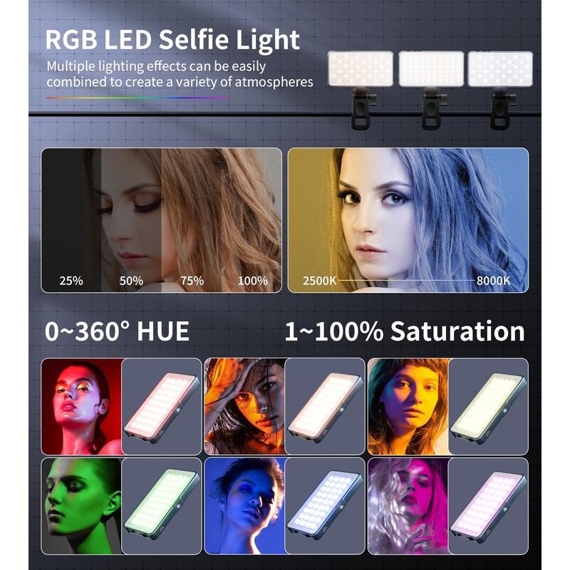 - Wide Compatibility and Multiple Usage ScenariosRGB selfie light compatible with 99% smartphones, laptops, IPad's, etc. Comes with a metal hot shoe that attaches to your camera, perfect for TikTok, YouTube, Instagram and more. iPhone's selfie light, you can use it selfie, live broadcast, photography or makeup, to solve the problem of low light and give you a better experience