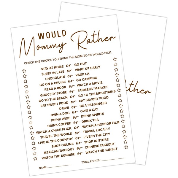 ZEDEV 30 PCS Cute Bear Would Mommy Rather Baby Shower Game for Boy Girl, Double-Sided Games Gender Neutral Gender Reveal Party Supplies & Decor-C07