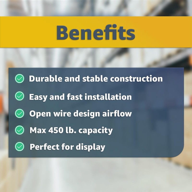 Optimized Airflow & Product Protection: The open-wire construction enhances ventilation, minimizing dust buildup and maintaining product integrity—perfect for food storage, inventory management, and professional organization.