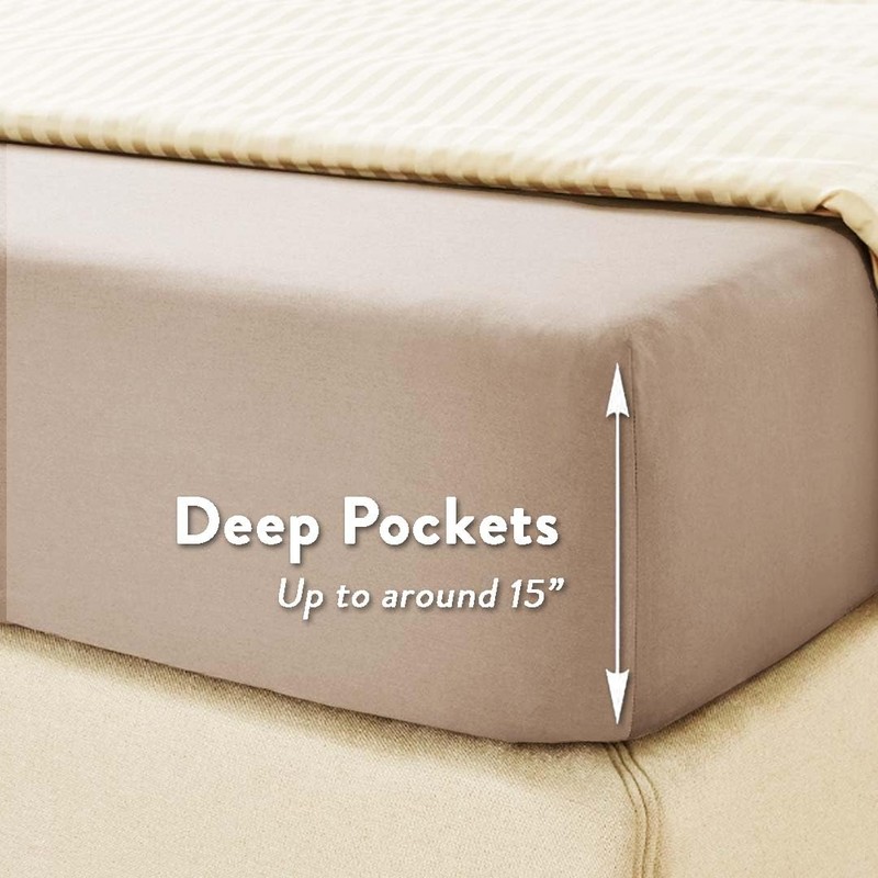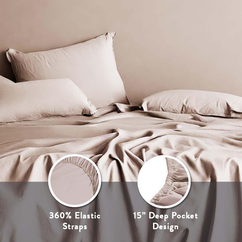 ZEE CLOUD Bed Sheet Set - 4 Piece Bedding Set - Breathable & Cooling - Hotel Luxury Bed Sheets - Extra Soft - Easy Care & Easy Fit (Beige, Queen)