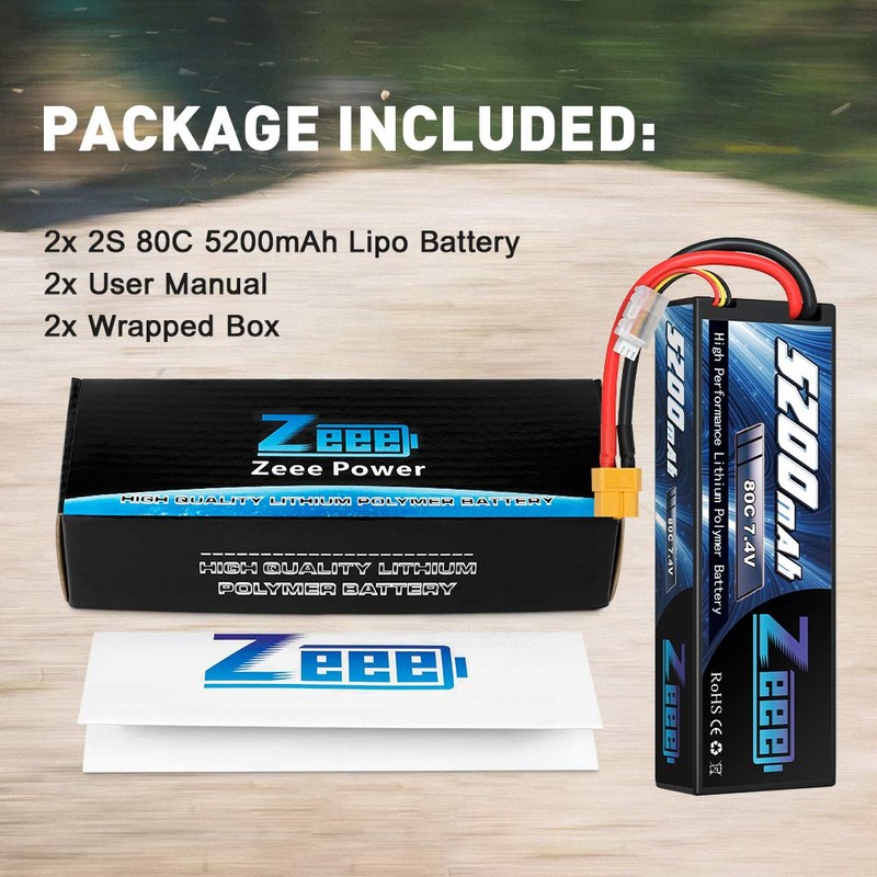 - 【What you get】- 2 Pack of Zeee 7.4V 80C 5200mAh 2S Lipo Battery hard case with XT60 Connector. Please contact us immediately if you have any problems, we will reply you within 24 hours.