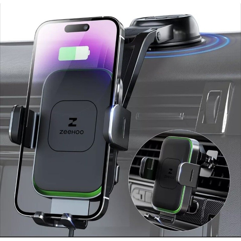 ZeeHoo 15W Fast Wireless Car Charger Power Grip CC70 Black Suction Cup Vent Moun