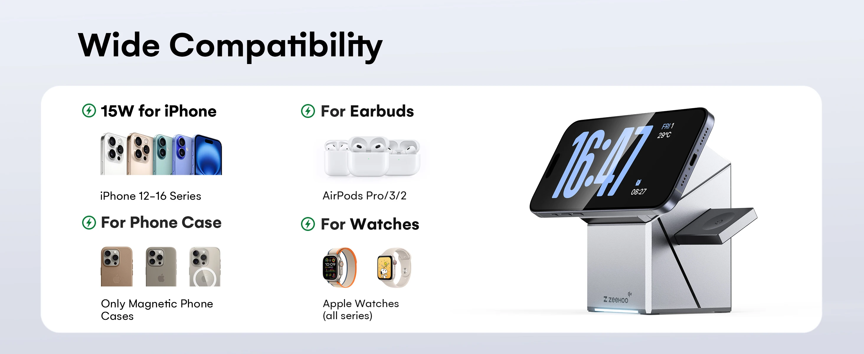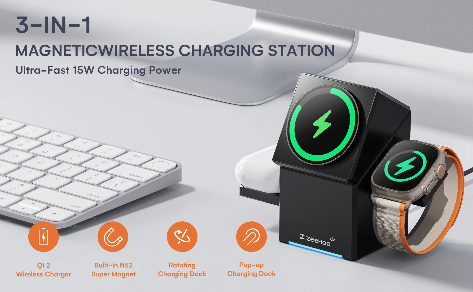 Product Name | ZEEHOO-CuBeTrick X 3-in-1 Wireless Charging Station-Black-US Plug |