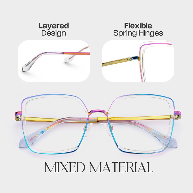 • Square glasses with spring hinges can better adapt to various face sizes and enhance your facial contours.