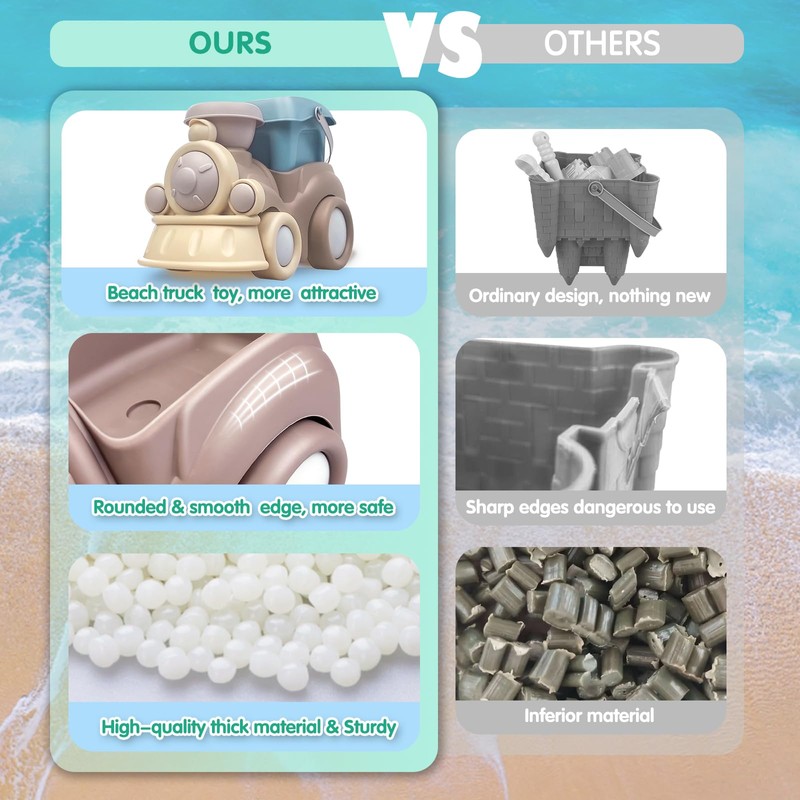 - 【Truck Design & Soft Colors】Cute colors and design would be a great toy for a child who loves trucks. The bucket and watering can come off the truck and be used separately. Our beach toys are more than just a bucket to build a sand castle, just imagine, now you have a truck to drive around the castle in the sand, it’s different, unique, and super fun for your little boy or girl. When your baby goes to the beach, maybe a lot of the other children want to join and play with. A hit at the beach!