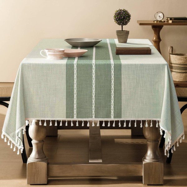 ZeeMart Contrast Linen Table Cloth Rectangle Table Cloths 60x104 Inch Green, ...
